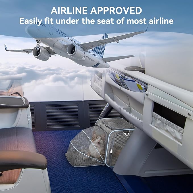 - 【Comfortable Space】 Expandable cat carrier enables pets to sprawl out, lay, see all around and relax when you have a flight trip, also works great in the car, roomy and they lay in it like a bed. The airline cat carrier can be folded totally flat when not in us.