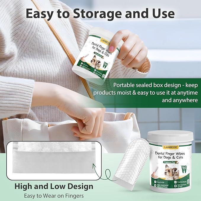 - Effectively Clean Teeth and Gums: LANBEIDE teeth cleaning wipes for dogs and cats are perfect for removing stains on your pet's teeth and gums that prevent plaque and tartar build-up and encouraging good oral hygiene.