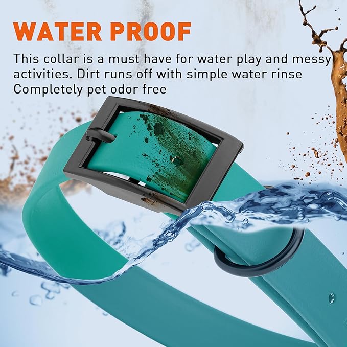 Dogline Biothane Waterproof Dog Collar Strong Coated Nylon Webbing with Black Hardware Odor- Proof for Easy Care Easy to Clean High Performance Fits Small Medium or Large Dogs, Blue Aqua