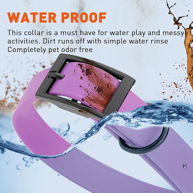 - Free Your Dog to romp in puddles and retrieve from lakes with the Dogline Biothane Waterproof Dog Collar. This water-repellent collar stays dry and odor-free, without shrinking or losing flexibility.