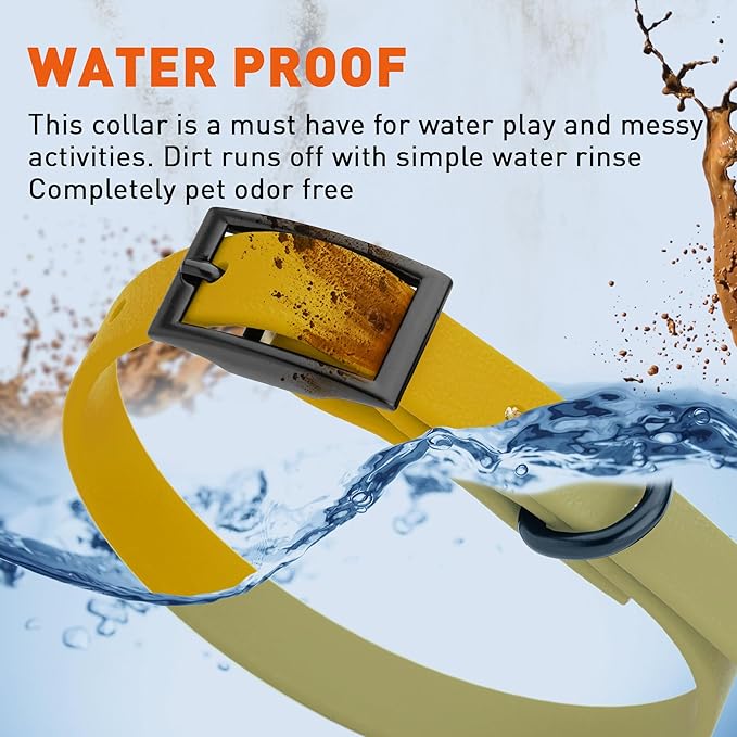 - Free Your Dog to romp in puddles and retrieve from lakes with the Dogline Biothane Waterproof Dog Collar. This water-repellent collar stays dry and odor-free, without shrinking or losing flexibility.