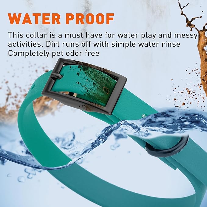 Dogline Biothane Waterproof Dog Collar Strong Coated Nylon Webbing with Black Hardware Odor- Proof for Easy Care Easy to Clean High Performance Fits Small Medium or Large Dogs, Blue Aqua