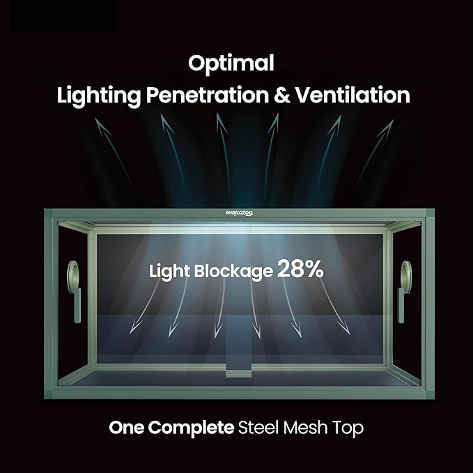 - 【Highly Adaptive】Well-lit screen top with only 28% blockage. Compatible with many reptile accessories and equipment, such as heat lamps for reptiles, reptile humidifiers, reptile misters, reptile foggers, reptile UVA and UVB. Our reptile terrarium is great for holding temps and humidity.