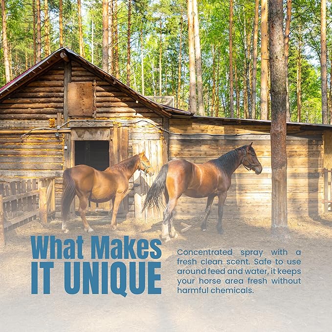 - Easy Application: Just dilute as instructed, spray across surfaces, and let air dry—perfect for routine use in equine care areas.