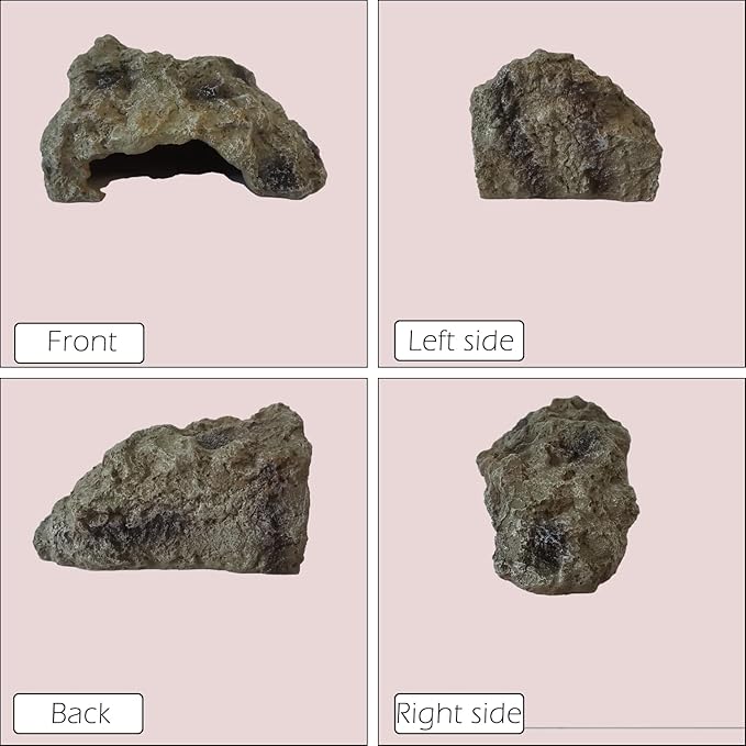 - Size – The cave has a suitable size entrance (Please read the measurement pic for details). The edges of this reptile cave and rock are crafted exquisitely to be smooth and safe to avoid cutting your pet. This reptile rock creates a comfortable and natural hide for ball python, bearded dragon, leopard gecko, tortoise and lizards, etc.