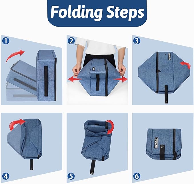 - [Easy to carry]Special double handle design provides more carrying options, the travel kitty litter box folding is also very simple, and the folded litter box can be carried in a suitcase or handheld. The large space of the cat litter box with a lid can even be used as a kitty travel bag to put some pet supplies(pet treats, tissue, water bottle...), it will be convenient and multifunctional!