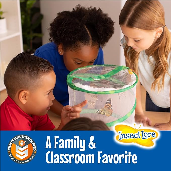 - USER-FRIENDLY & EDUCATIONAL - Our mesh habitat is reusable, designed for effortless use, collapsing flat for convenient storage and reassembly. With its easy viewing and straightforward directions, this live caterpillar kit provides a fun and engaging way to teach your little ones about nature!