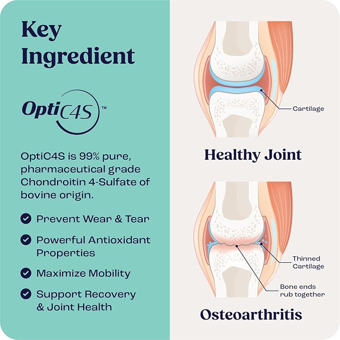 - FAST-ACTING JOINT RELIEF WITH CHONDROITIN: Summit Animal Health Joint & Mobility offers superior joint support using OptiC4S! Our pharmaceutical-grade chondroitin of bovine origin delivers a smaller molecule – more effective than glucosamine for dogs’ joint health. This proven ingredient targets pain, repairs damage and restores mobility.
