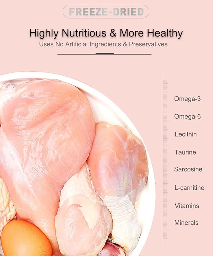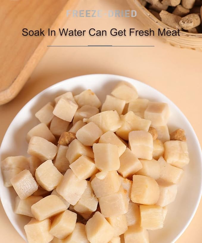 - ✅FEEDING RECOMMENDATIONS – protein treats can be given whole or easily crumbled as a tasty incentive at mealtime. Moistening the low-calorie treat reactivates the meat’s aroma, making this reward a great way to train your pets. 3 Feeding Recommendations :1. Feed Directly 2. Soak In Water, Get Fresh Meat 3. Mix With Pet Food