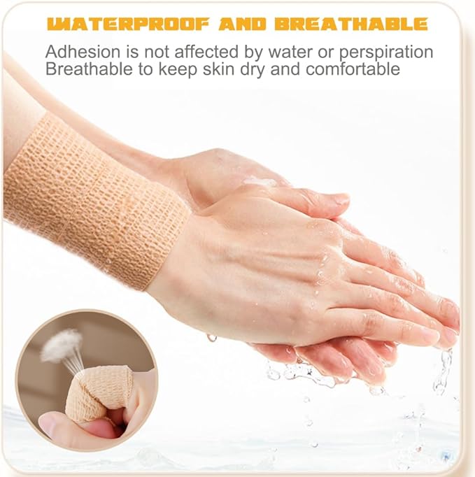 - Comfortable to Wear: Self-Adherent bandages wrap made of non-woven fabric, lightweight, waterproof, soft, flexible and breathable, less irritation to your skins. It effortlessly covers all body parts such as wrists, ankle, toe, elbow, knees and fingers. It suitable to relieve swelling, secure wound dressings and promote healing, ideal for strains and sprains.