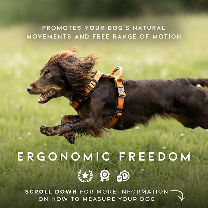 - ERGONOMIC FREEDOM — Engineered with an intentional Y-shaped design, the Explorer Harness promotes your dog’s natural movements and free range of motion. Our harness is constructed to ensure unrestricted mobility around your dog’s shoulders, supporting better posture and joint health.