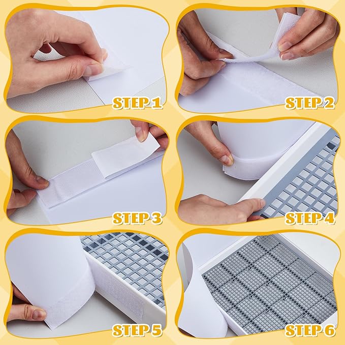 - Frosted Splash Guard: the equipped splash guard can provide a better experience for your rabbit by extending the height of the bunny litter pan to form a comfort triangle for easy urination; We will send you a piece of hook and loop fastener so that you can stick the splash guard to the corner of the rabbit litter box; The advantage of hook and loop fastener is that you can remove the splash guard at any time to clean it