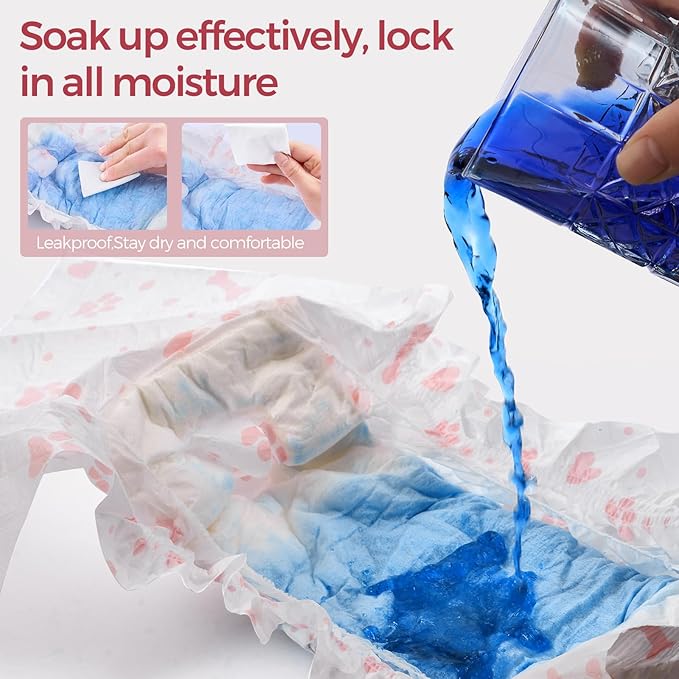 - Super Absorbent, Leak Proof: With a super absorbent polymer, the female dog diapers quickly convert urine into gel, quick dry and locking in moisture. Ensuring dog's fur stays dry. Leak-proof PE backing film gives entire house protection, no longer worry about leaks damaging your carpet, rug, chair, or sofa