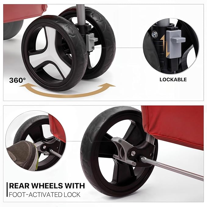 - Advanced Braking System - The two rear wheels of our pet stroller are equipped with brake protection devices, so you can park your stroller safely and securely even on inclined surfaces.