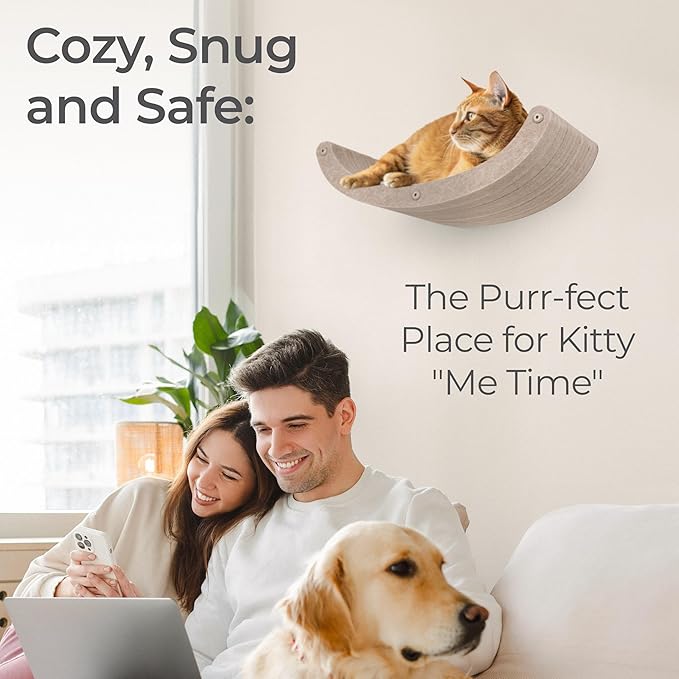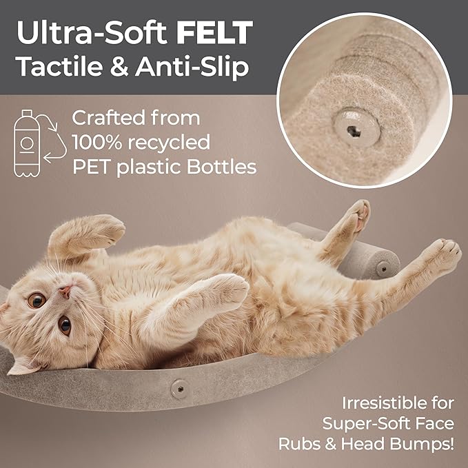 - Pawsitive Impact: Our wall mounted cat furniture is crafted with recycled P.E.T. felt materials, creating a strong, tactile and anti-slip felt to endure daily use. Our patent-pending design offers irresistible softness, perfect for face rubs and head bumps.
