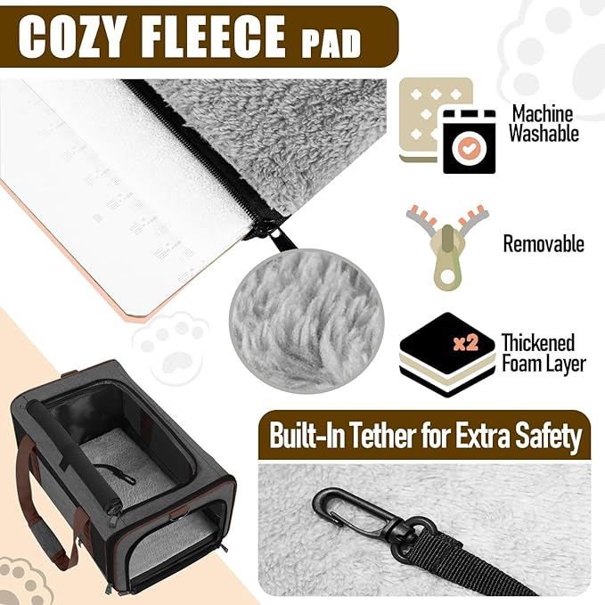 - 2 carrying ways to make transport easy and convenient. By hand with the padded top handle, or over the shoulder with the adjustable and detachable non-slip shoulder strap for custom mobility, making sure your furry friend is always within reach. Easy to secure on the car seat firmly by shoulder strap to keep pets restrained for safety while driving