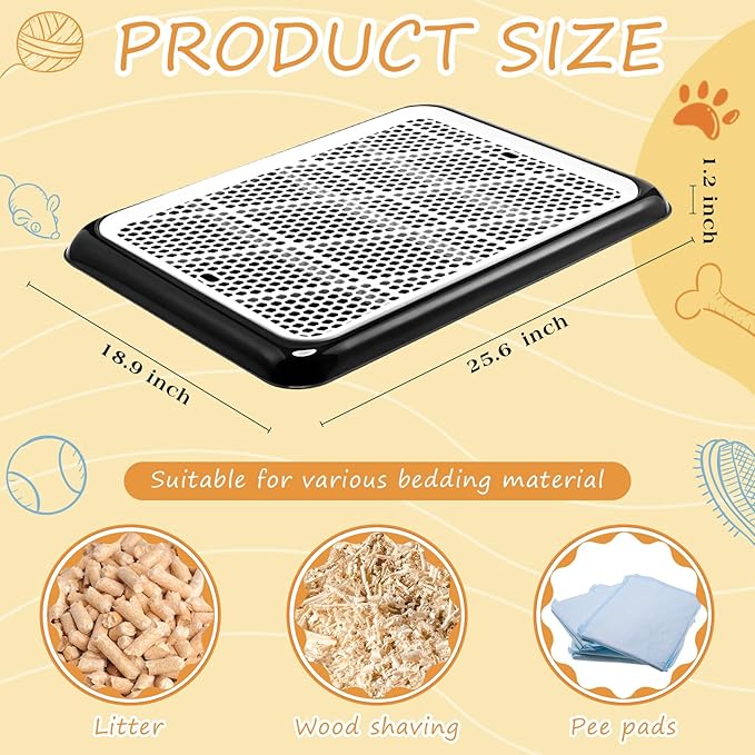 - Proper Size: the dog toilet measures about 25.6 x 18.9 x 1.2 inches, with enough room for your lovely pet to move around freely and enjoy peeing time; In addition, the raised grid design allows more litter and droppings to stay inside to avoid spills, so that you have no need to do extra cleanup, saving time and effort