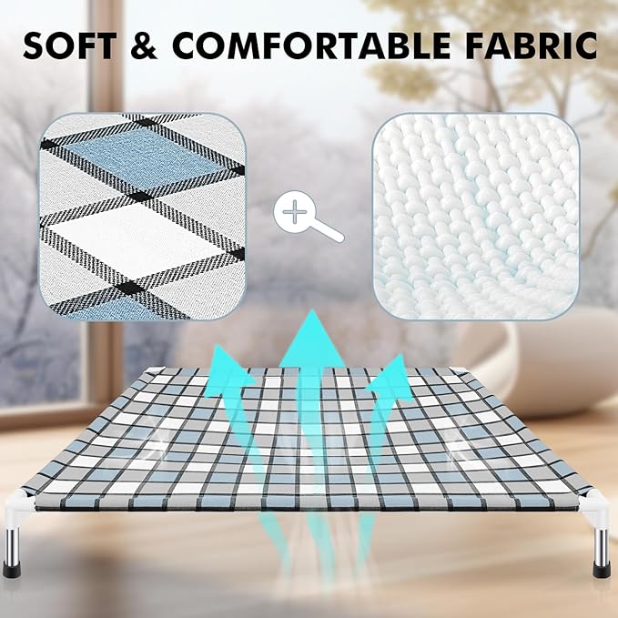 - 【Stylish Design of Dog Beds】Not only prioritizing comfort, our raised dog beds also emphasize stylish design. The minimalist blue and white grid design concept makes it an integral part of home decor, adding a unique touch of sophistication to your household.