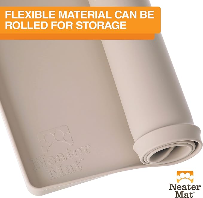 Neater Pet Brands Neater Mat Pet Mats for Food and Water, Cat & Dog Bowl Mat Waterproof Silicone, Feeding Tray, Dog Food Mats for Floors, Placemat w/Raised Edge for Under Bowls, 32" x 24", Cappuccino