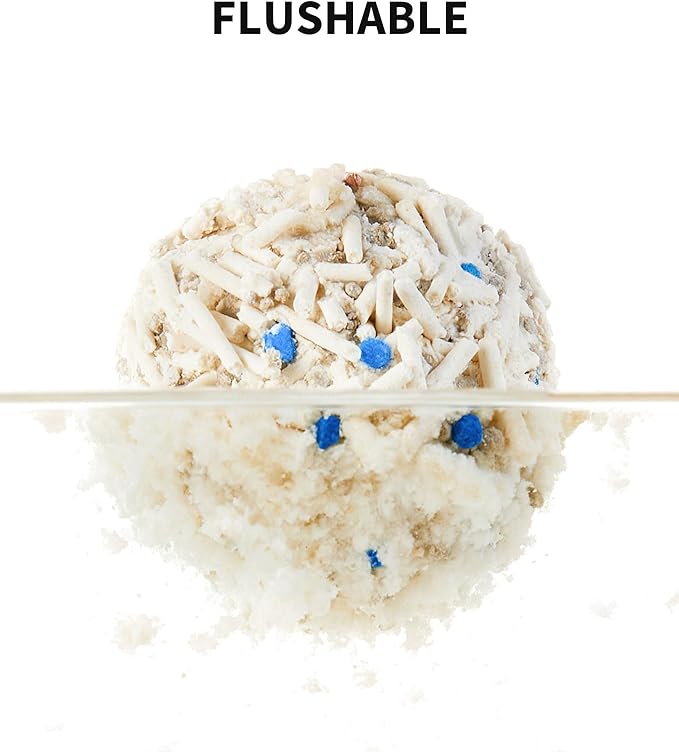 - Water Flushable: Made of natural ingredients,water dissolvable and flushable, you can directly pour the used cat litter into the toilet(Note: Please don't pour too much one time).