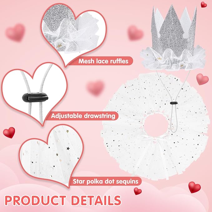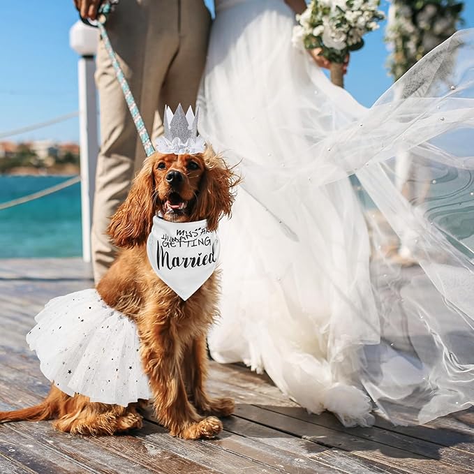 - DOG WEDDING DRESS 4 PACK: Our puppy triangle scarf, crown, bow tie collar, skirt set perfectly meets dress-up needs; you don't need to buy other items separately, thus reducing the stress of shopping choices, ideal gift choice for dog-loving families or pet families.