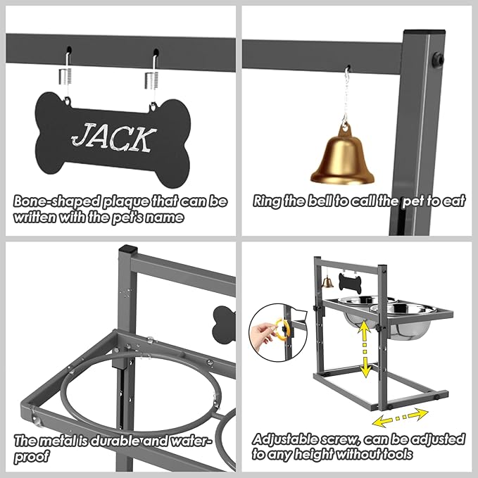- ADJUSTABLE HEIGHT FOR ALL DOG LIFE STAGES: The elevated dog bowl is thoughtfully designed to be easily adjustable from 4.5 to 12 inches, making it suitable for large, medium, and small dogs and cats. Accompany your pet from puppyhood to adulthood with hassle-free height adjustments, no tools required
