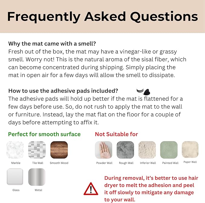 - Shedding-resistant Material for Less Mess, More Comfort: Reduce shedding and mess with our natural sisal material. Provide your cat with a safe and comfortable scratching surface that doesn't create a mess. Keep your home looking and feeling fresh with our shedding-resistant cat scratcher mat.