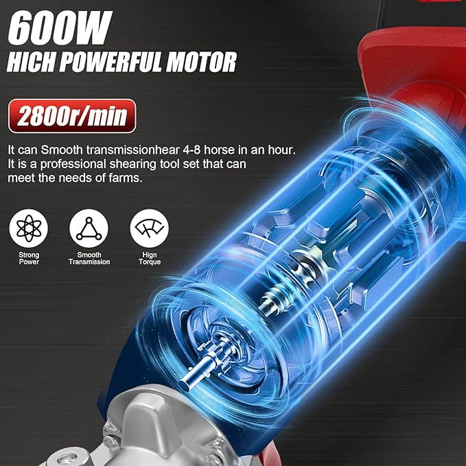 - ✅【6 Variable Speeds】Our professional shears feature 6 variable speed knobs, ensuring ease of use for both beginners and professionals alike. The low speeds (1-3) deliver precise performance for trimming sensitive areas, such as the neck and legs of horses, while the high speeds (4-6) provide maximum power for faster trimming and full-body shaving.Ideal for trimming horses, equine, goats, ponies, cattle, and other large thick coat animals.