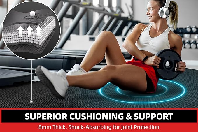 - ๐ช Ideal for High-Impact Workouts, Can Be Used with Shoes: Featuring 8mm/10mm thick cushioning, our gym mats are specially designed for high-impact exercises like weightlifting, kettlebell swings, or cardio workouts. Protect your joints and floor while staying comfortable during intense training sessions.