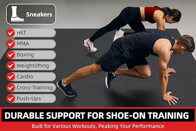 - ๐ช Ideal for High-Impact Workouts, Can Be Used with Shoes: Featuring 8mm/10mm thick cushioning, our gym mats are specially designed for high-impact exercises like weightlifting, kettlebell swings, or cardio workouts. Protect your joints and floor while staying comfortable during intense training sessions.