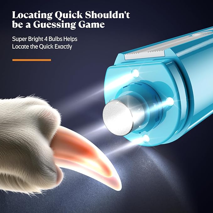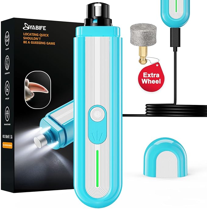 YABIFE 4-Lights Dog Nail Grinder, Easy Quick Locate Dog Nail Trimmers, for Puppy Paw Toenails or Pets from Small, Medium to Large, with Travel Lock, Whisper Quiet, Heavy Duty 3 Speeds