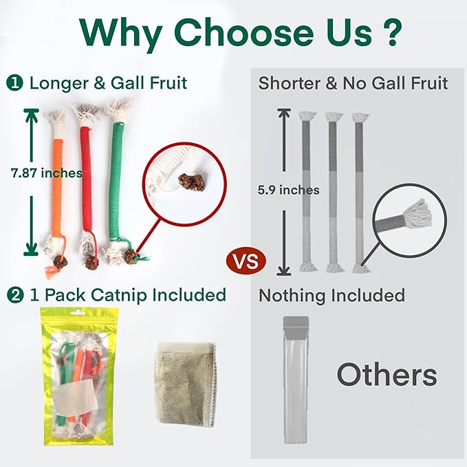 - Secure Cat Rope Playthings-- Handcrafted from carefully selected cotton ropes, our set of rope toys ensures safety without any iron wire. Enhanced with Natural Silvervine gall fruit tails, they're perfect for cats to chew and bite without worries