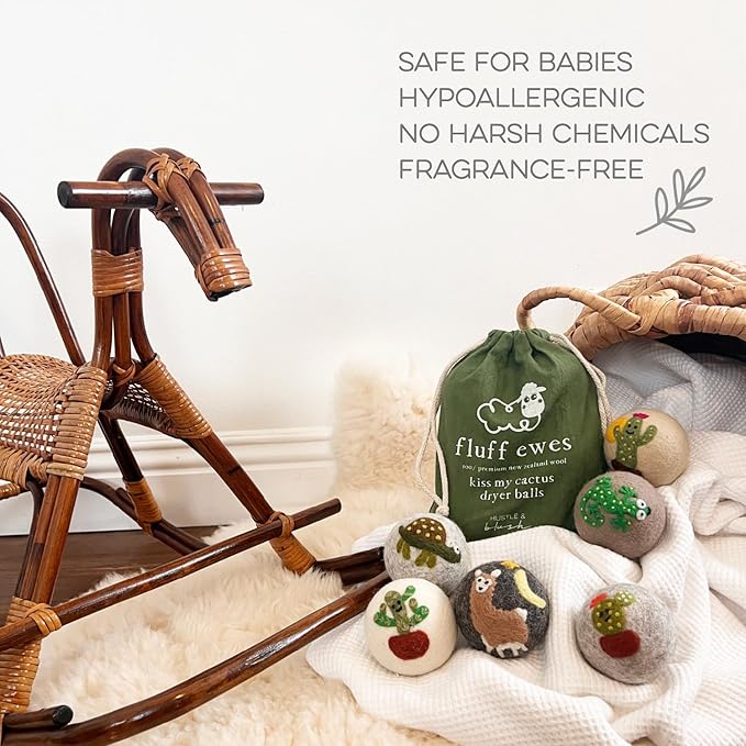 - NATURAL AND SAFE FOR SENSITIVE SKIN: Protect your family with these wool dryer balls made from 100% premium New Zealand wool. Great for baby clothes and delicate fabrics, these fragrance-free dryer balls wool cute option keeps laundry soft without harsh chemicals. Feel confident using them if you have sensitive skin for safer, healthier laundry.