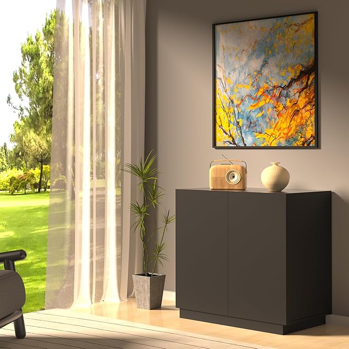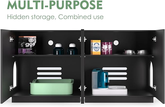 Large/Tall Litter Box Enclosure, Modern Wooden Litter Box Furniture for XL Litterbox with Hidden Storage as Sideboard Cabinet (Black)