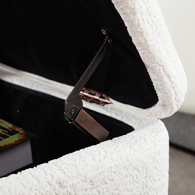 Wavy Ottoman Storage Bench Multi-Functional Narrow Entryway Bench Elegant End of Bed Bench with Storage and Safty Hinge for Living Room Entryway Hallway Bedroom Boutique, White