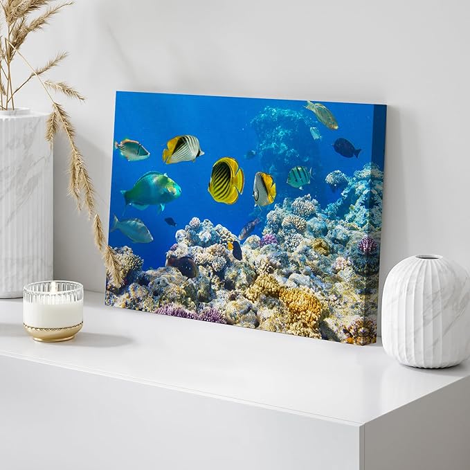 wall26 Canvas Print Wall Art Tropical Island Ocean Sea Fish Coral Reef Nature Animals Photography Realism Rustic Scenic Landscape Wilderness Earth Colorful for Living Room, Bedroom, Office - 12"x18"
