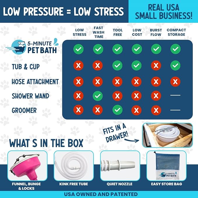 - LOW STRESS DOG BATH HOSE ATTACHMENT – Attach this dog bath hose directly to your shower head to create a calm and efficient indoor bathing station for pets. It delivers a gentle, controlled water flow that supports full-body washing, grooming, and rinsing—helping reduce stress for pets and making at-home pet care cleaner, safer, and easier to manage.