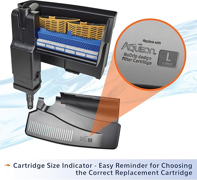 - The Bio-Holster securely holds the cartridge in place, fostering biological filtration with a NoDrip basin design, minimizing water mess during cartridge changes.