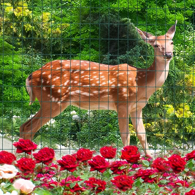 Green PVC Coated Welded Wire Fence 36 Inch x 25 Foot, 2 Inch x 3 Inch 16GA, Garden Border Fencing Roll Vinyl Coating Metal Wire Mesh for Yard Vegetable Plant Protection Poultry Netting