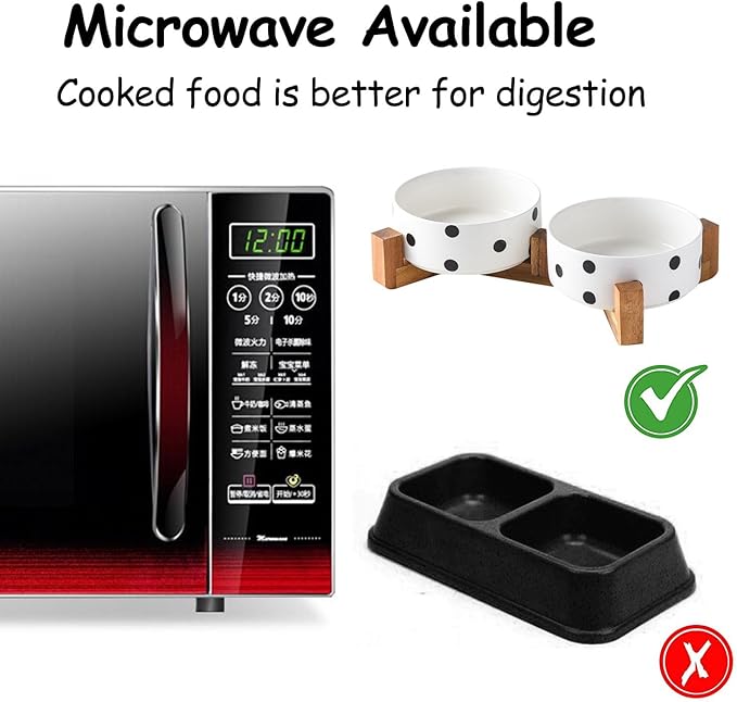 - Double Bowl Design:One dog bowl for food and one for water, Each ceramic cat bowl has a Unique wooden stand, raising the dishes closer to your pet for more comfortable eating