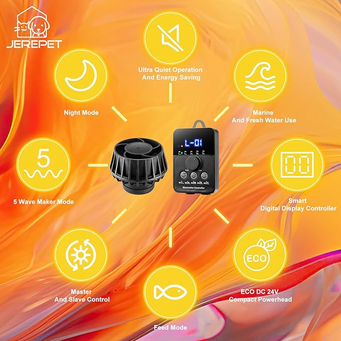 - Smart Controllable Wave Maker:with smart digital display and adjust knob controller with multiple mode ,can set pluse wave mode, steady strem flow mode,10 minutes feed mode,master and slave control,ideal for coral reef tanks;
