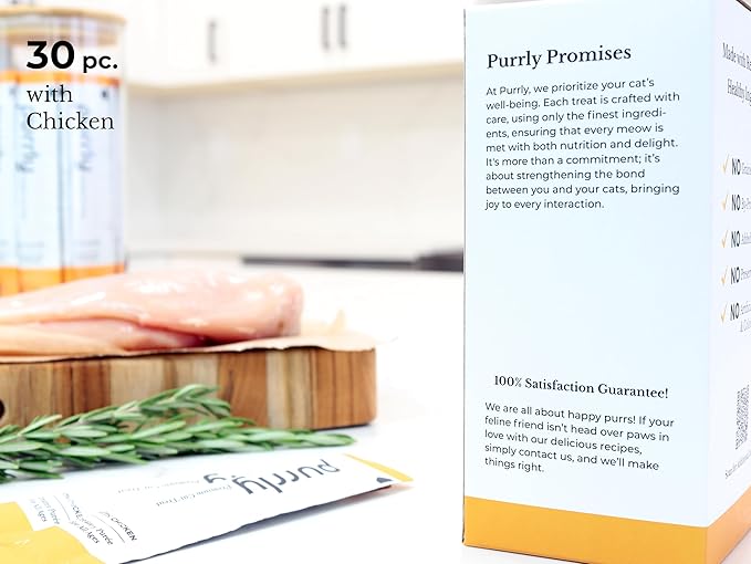 - HUMAN-GRADE PROTEIN SOURCES - Purrly uses only human-grade meat and fish as the primary protein source, exceeding industry standards and ensuring exceptional taste and unmatched nutritional value for your cat. These exquisite treats elevate snack time beyond ordinary treats, offering a truly gourmet experience that satisfies your feline's discerning palate. Each pouch serving unparalled quality and nutrition.