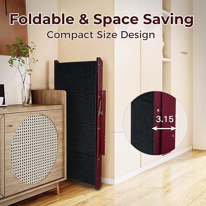 - Space-Saving Foldable Dog Stairs: Our foldable pet stairs feature a space-saving design, folding down to just 3.15" thick for convenient storage. Perfect for narrow spaces like under beds or in car trunks, it's an ideal choice for both home and on-the-go use, offering accessibility wherever your pet needs it