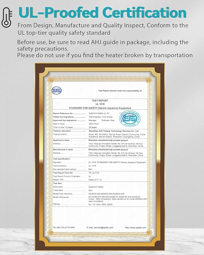 - 🐟🌡️[High Quality with Longer life span] 🐟Before the digital aquarium heater delivery, we have 100% conducted a 72-hour heating test in water to ensure the safety of the product. Using a thick quartz tube, 1.5m/4.75 ft cable(U.S. UL Certified), high temperature resistant protective case which Prevents water plants from adhering to the quartz glass wall and protects small fish not touching the quartz tube