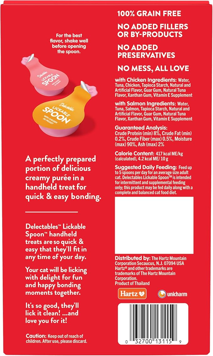 Hartz New Delectables Lickable Spoon Interactive Lickable Cat Treats for Quick & Easy Bonding, Variety Pack 32ct