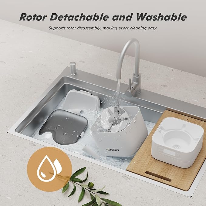 - Washable Dispensing Mechanism: Every part that comes into contact with food is designed for hassle-free cleaning. The rotating dispenser, food container, top lid, and food tray are all detachable, making it easy to keep your feeder spotless