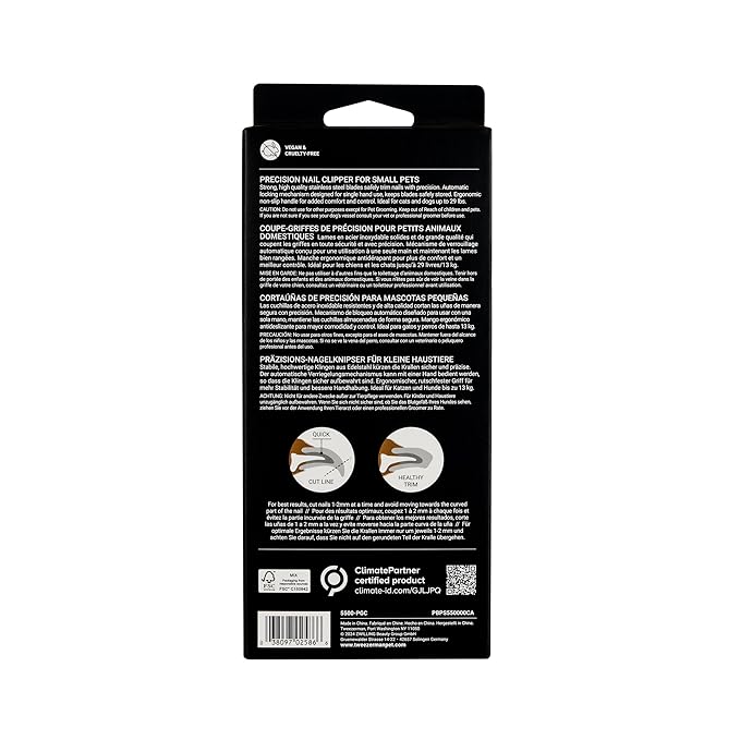 Tweezerman Small Nail Clippers for Dogs & Cats, Manual Professional Dog & Cat Nail Trimmer with Ergonomic Handle