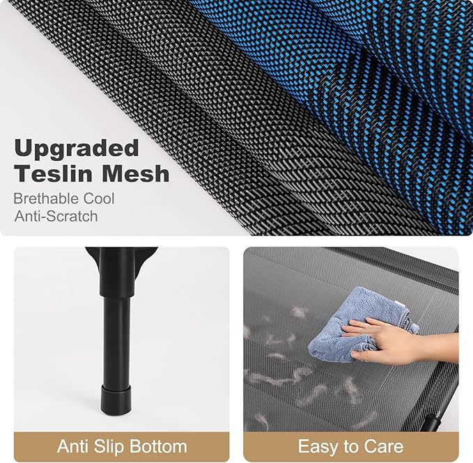 - [Breathable and Cool] Made with breathable Teslin fabric, this outdoor dog bed promotes air circulation, keeping your pet cool and comfortable even on hot days. The material is also highly durable and resistant to wear, ensuring long-lasting use.