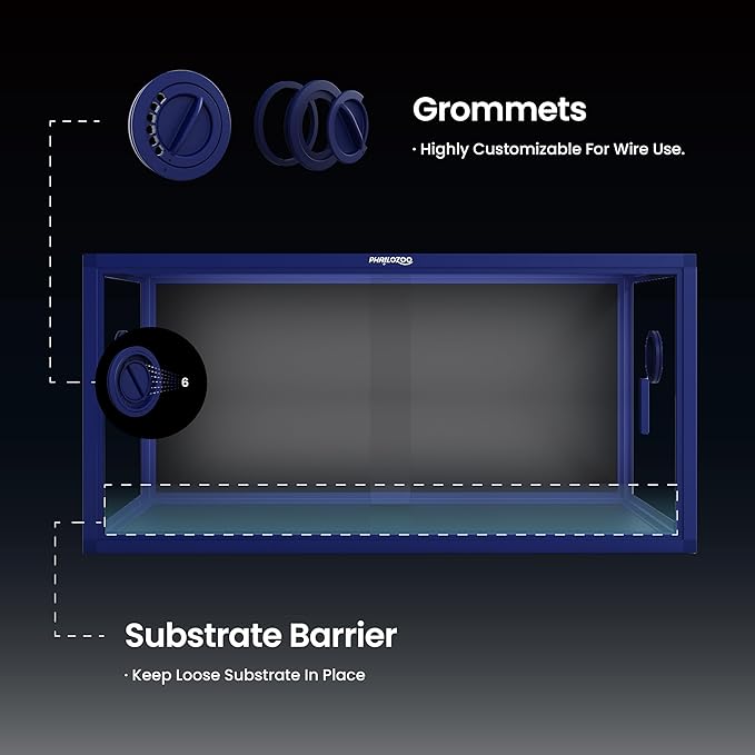 - 【Easy Maintenance】Front opening reptile terrarium with door handles included for easy cleaning & feeding. No more suction cup problems or unsightly fingerprints all over. The substrate barrier keeps the substrate in place. Our tempered glass doors are durable enough to withstand scratching.