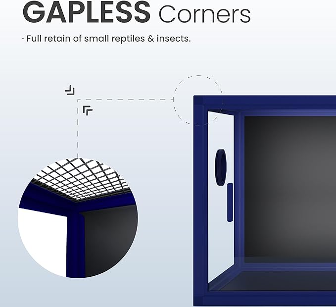 - 【Easy Maintenance】Front opening reptile terrarium with door handles included for easy cleaning & feeding. No more suction cup problems or unsightly fingerprints all over. The substrate barrier keeps the substrate in place. Our tempered glass doors are durable enough to withstand scratching.